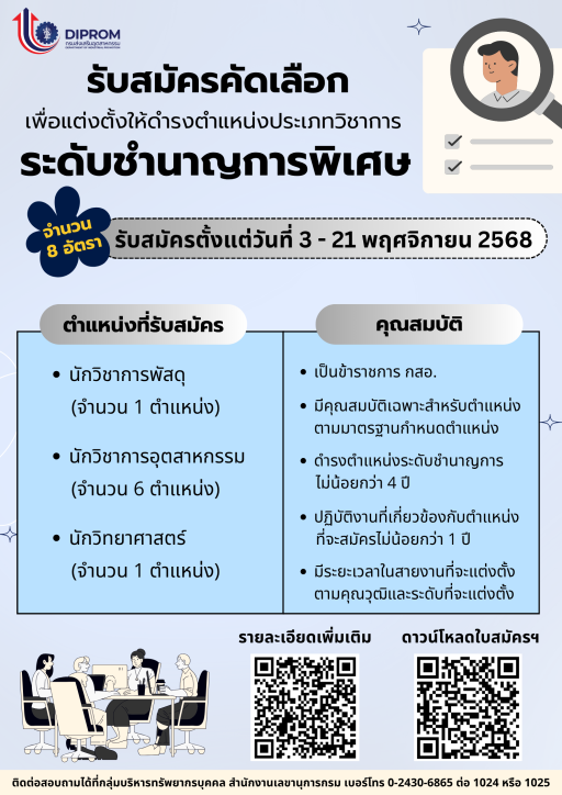 เปิดรับสมัครคัดเลือกเพื่อแต่งตั้งให้ดำรงตำแหน่ง ประเภทวิชาการ ระดับชำนาญการพิเศษ ตั้งแต่วันที่ 3 -21 พฤศจิกายน 2568