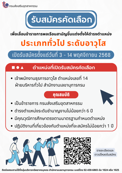 เปิดรับสมัครคัดเลือกเพื่อเลื่อนข้าราชการพลเรือนสามัญ ประเภททั่วไป ระดับอาวุโส ตั้งแต่วันที่ 3 -14 พฤศจิกายน 2568